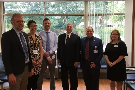 From left are: Neil Holland, M.D., Geisinger’s director of neurology; Geisinger neurologist Maya L. Lichtenstein, M.D.; Peter Stewart, Ph.D., Geisinger neuropsychologist; Conrad Falvello, senior advisor to U.S. Rep. Lou Barletta; Behavioral neurologist Glen Finney, M.D., director of the Memory and Cognition Program at Geisinger; and Trudi Dempsey, northeast operations manager of Neurosciences.