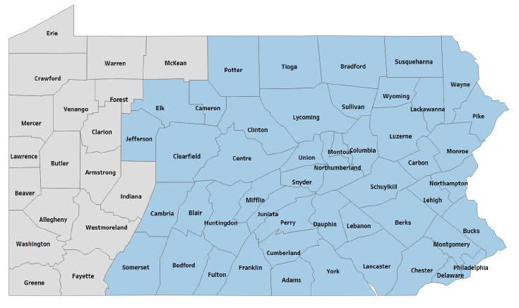 As of Sunday, June 1, the GHP network coverage area will consist of the counties shaded in blue.