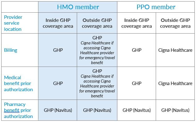 Claims and prior authorization requests for HMO members will still go through GHP.